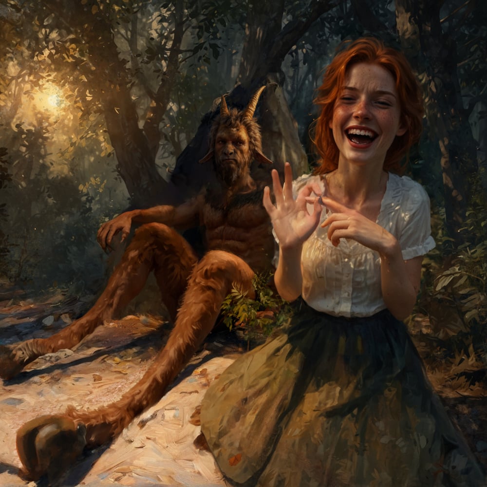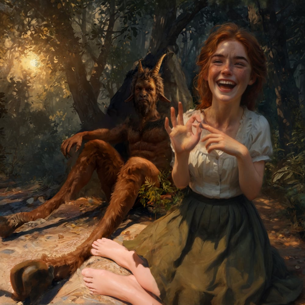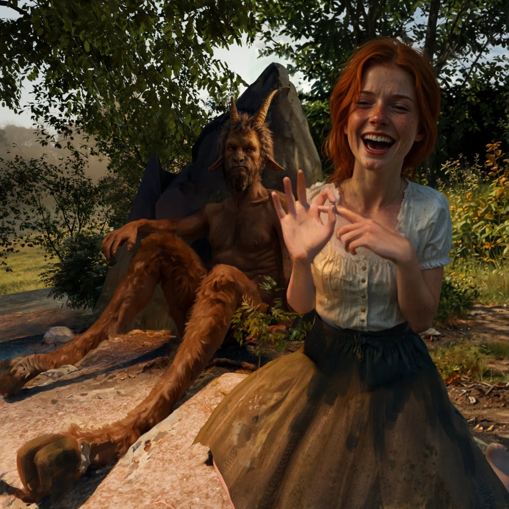 I jumped through each person quickly. But it wasn’t that I generated one image and it was perfect (things are never that easy). I would do a lot generations (maybe 20ish) and pick and choose. Samson’s hands, legs, facial expression, horns, the facial hair might come from all different generations and I would have to composite them. But because I kept the denoise strength low on the image to image, things usually stayed where I put them.